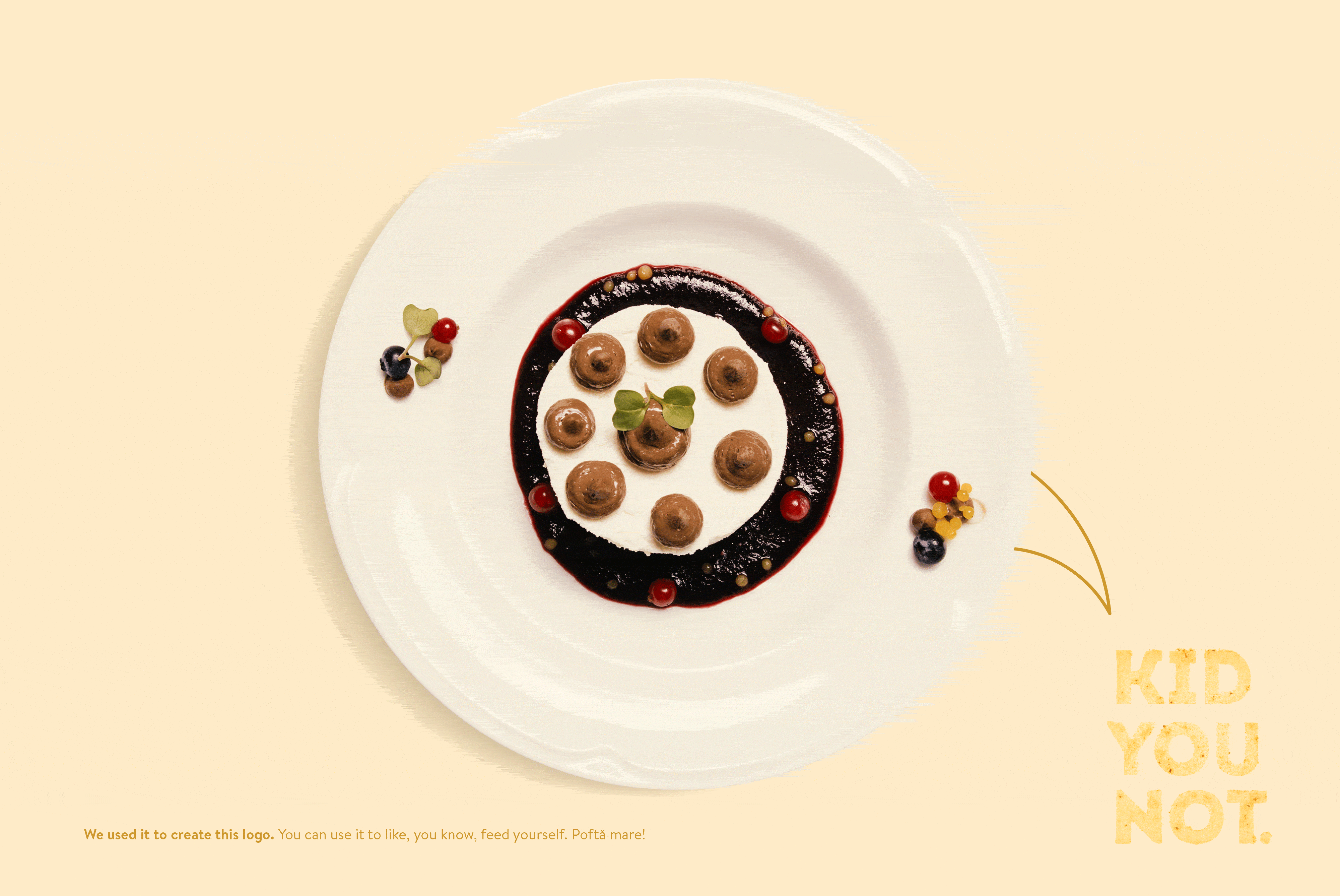 Identity for ‘Kid you not’ restaurant. We used food itself to make ink for printing the logos.